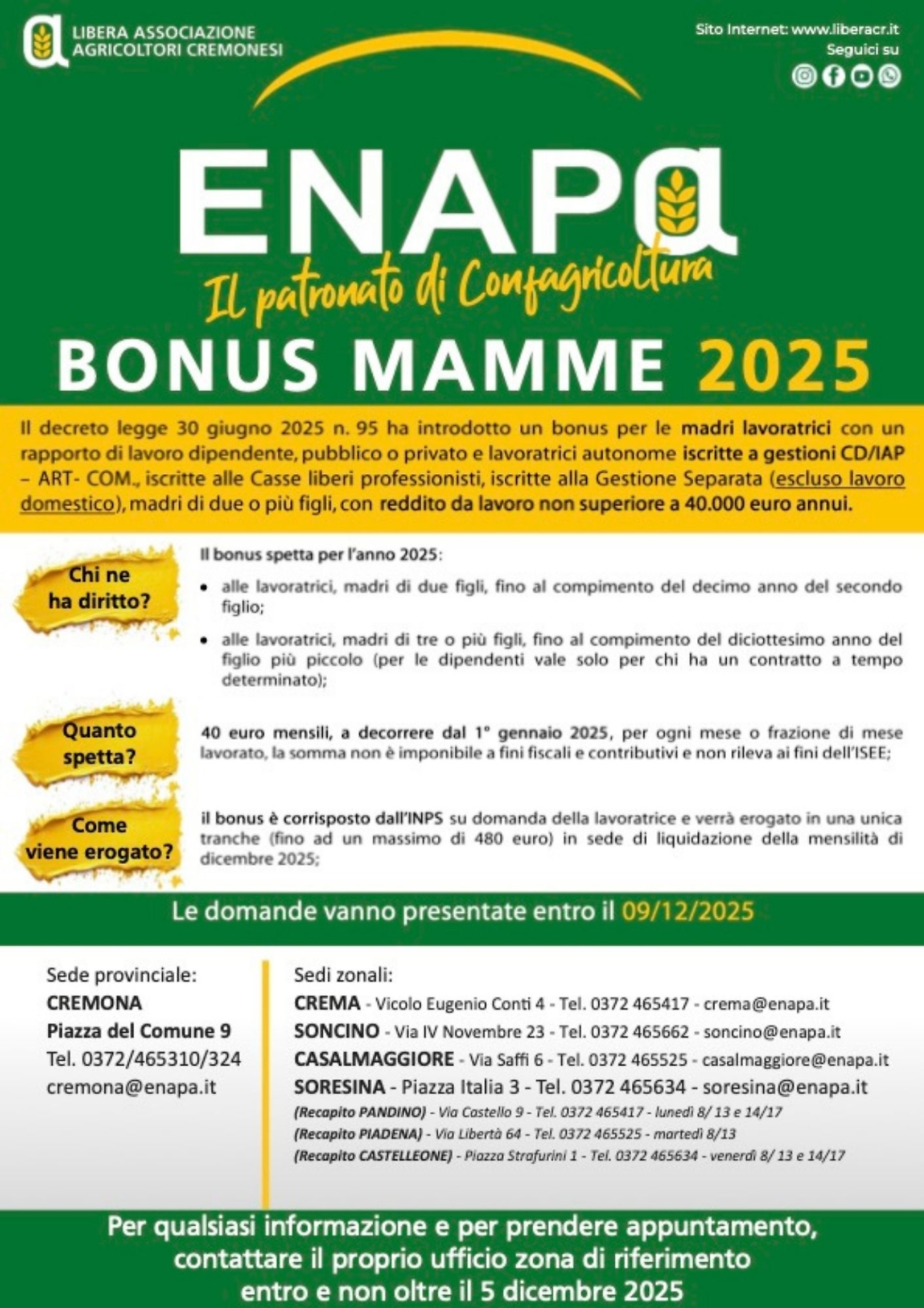 madri lavoratrici con rapporto di lavoro dipendente (pubblico o privato); lavoratrici autonome iscritte alle gestioni CD/IAP – ART/COM.; iscritte alle Casse dei liberi professionisti; iscritte alla Gestione Separata, per i periodi di effettiva attività lavorativa relativi all’anno 2025. Sono escluse dal beneficio le lavoratrici madri con rapporti di lavoro domestico.