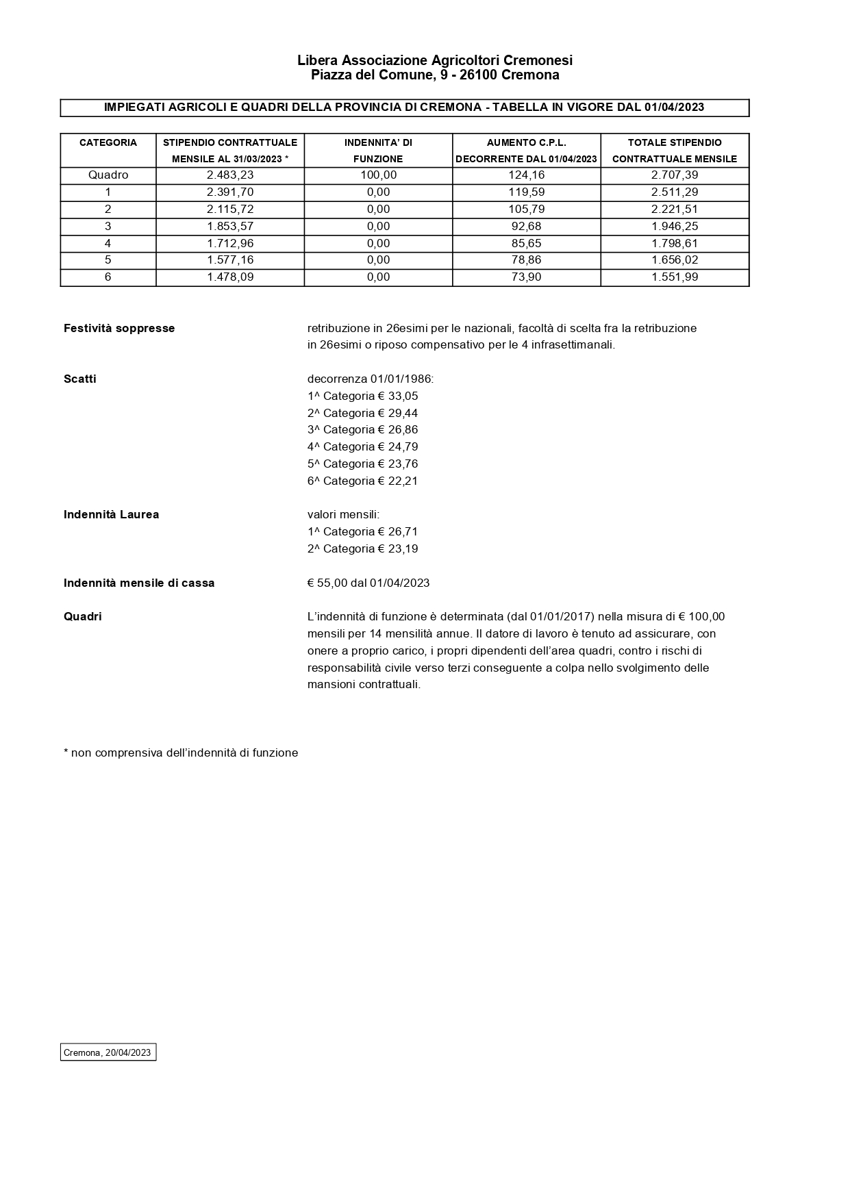 Di seguito si riporta la nuova tabella delle retribuzioni in vigore dal 01/04/2024. Di seguito si riporta la nuova tabella delle retribuzioni in vigore dal 01/04/2023.