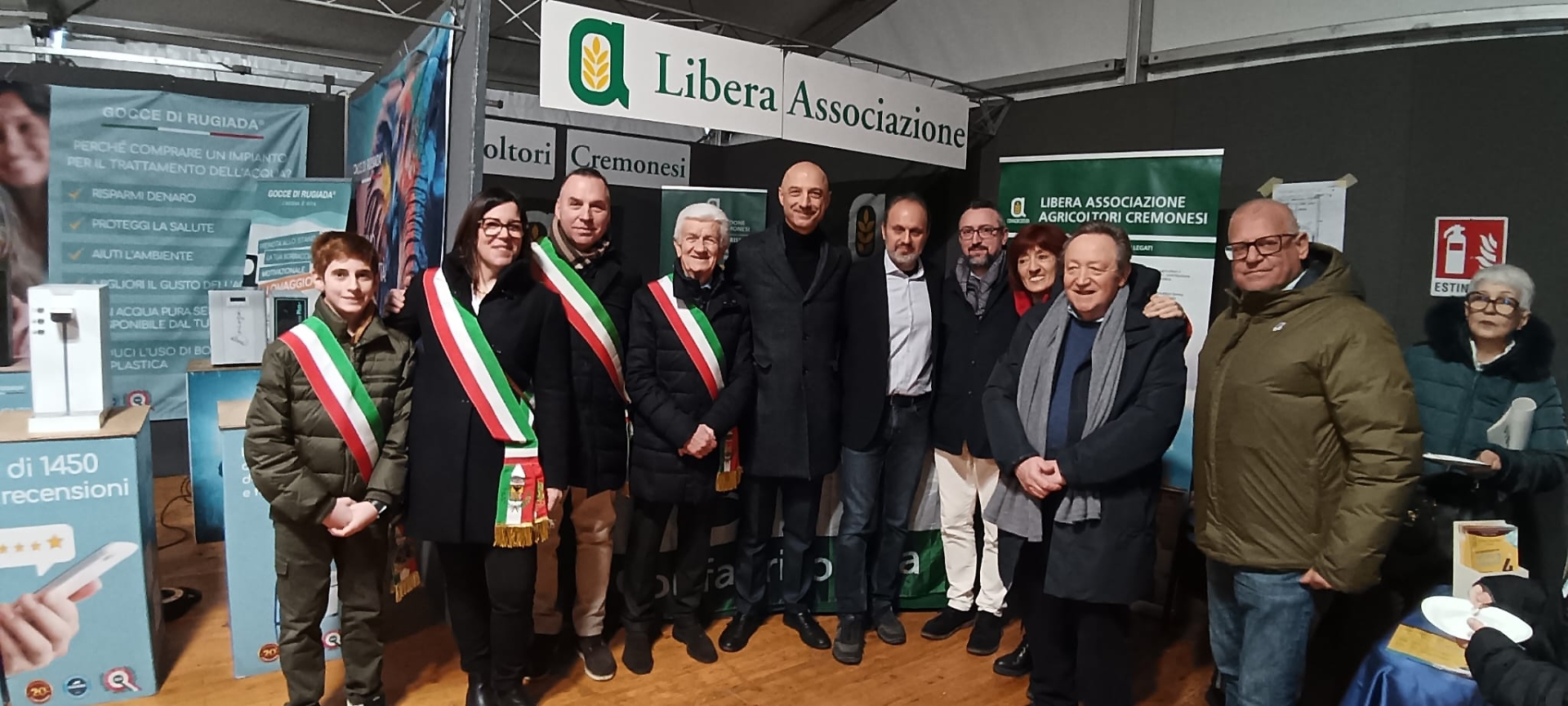 Il direttore di Libera Renzo Ardigò al centro, a sinistra: Marianna Patrini (sindaca di Rivolta D'Adda), Aries Bonazza (sindaco Ripalta Cremasca), Gianni Rosso (sindaco Offanengo); a destra: Marcello Ventura (consigliere regionale), Merigo Giorgio (presidente BCC Caravaggio e Cremasco), Cinzia Fontana (assessore comune di Crema), Piloni Matteo (consigliere regione Lombardia), Andrea Perissinotto (segretario di zona di Crema)